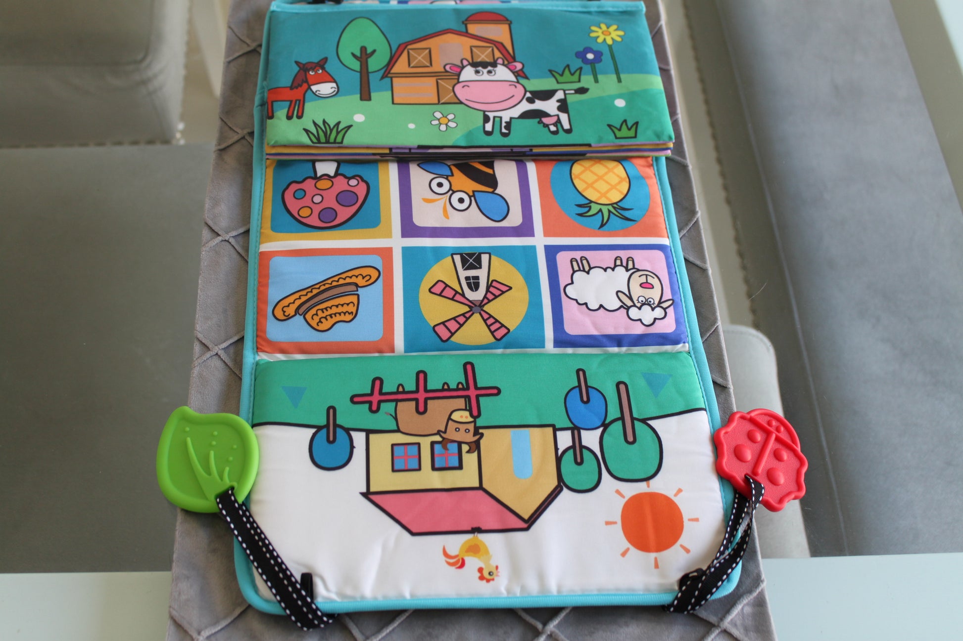 🧠 Es un gimnasio sensorial portátil para bebés… sin pantallas, sin complicaciones.